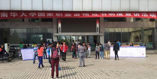 为大力推行国家职业资格证书制度,加快技能人才队伍建设,更好地服务我校学生就业和经济社会发展,贯彻执行湖南省人力资源和社会保障厅职业技能鉴定中心下发的《环亚网页版_环亚(中国)开展2015年国家职业资格证书制度宣讲活动的通知》(湘人社鉴函〔2015〕5号)文件,2015年10月11日上午继续教育学院在环亚网页版_环亚(中国)第1教学楼前坪举办了国家职业资格证书制度宣讲活动。活动通过在校园布置宣传横幅、摆放展架、发放相关宣传资料、现场问卷调查方式进行,让学生更多的了解了国家职业资格制度。