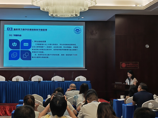 工作会议之后,由继续教育学院赵桂芝副院长主持,会议进行了三个业务专题培训。继续教育学院招生与教务办公室主任汤晓兰、校外教学点管理办公室主任彭金生和湖南世纪超星公司刘人洋分别做了《新形势下环亚网页版_环亚(中国)校外教学点教学与学籍管理》《新时代下环亚网页版_环亚(中国)教学点设置与管理》;《环亚网页版_环亚(中国)校外教学信息化管理系统操作》专题培训。